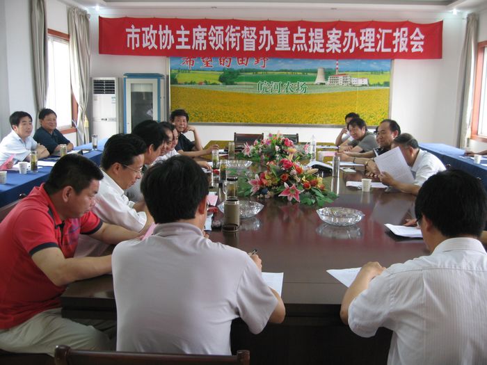 6月22日,安庆市政协在皖河农场召开市政协主席领衔督办重点提案办理汇报会,与会人员热议农场及海口镇蔬菜发展思路,市政协副主席殷金福出席会议,市农委、大观区政协、皖河农场领导及蔬菜种植专业户代表参加会议。
