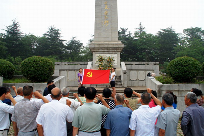 在蚌埠革命烈士陵园,党员们面向鲜艳的党旗庄严地举起右拳,再次从心底发出铮铮誓言:“我志愿加入中国共产党,拥护党的纲领,遵守党的章程,履行党员义务……”。“重温誓词”后,大家又参观了蚌埠市历史陈列馆,重温了革命战士浴血奋战的光辉历史,瞻仰了革命烈士的丰功伟绩。