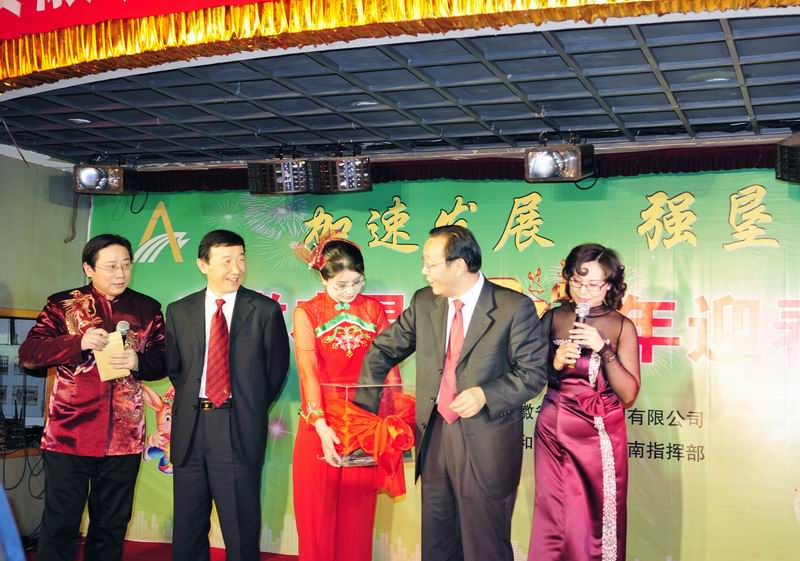 潮涌皖垦千帆竞,一元复始绘新景。新春伊始,1月17日下午,一台由省安徽省农垦集团公司主办、安徽通和宣城公司山南指挥部赞助的 “安徽农垦2011年新春联欢会”在省农垦新长城大酒店隆重举行,联欢会在一曲欢快的《好日子》歌舞拉开了大幕,省农垦集团公司领导班子首先集体合唱了《喀秋莎》《走进新时代》《大坂城姑娘》三首歌曲,掀起了联欢会的第一个高潮,接着来自集团公司机关各部室和在肥企业工作人员,表演了自编自演或改编的歌舞、小品、诗朗诵、大合唱等节目,内容丰富生动,艺术感染力强,热情讴歌了安徽农垦经济社会发展的成就和农垦人幸福生活指数的日益增长,精彩纷呈的表演不时引起全场热烈的牚声,前来参加全省农垦工作会议的垦区各农场、公司的领导一同观看了演出。联欢会上还不时穿插着互动游戏和抽奖活动,联欢会热烈奔放,高潮迭起,最后联欢会在机关部室负责人组成的合唱组的高亢的《英雄赞歌》、《歌唱祖国》歌声中结束。